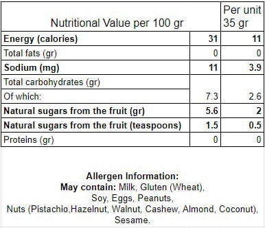 Nutritional value and allergen information can be read on the product label: